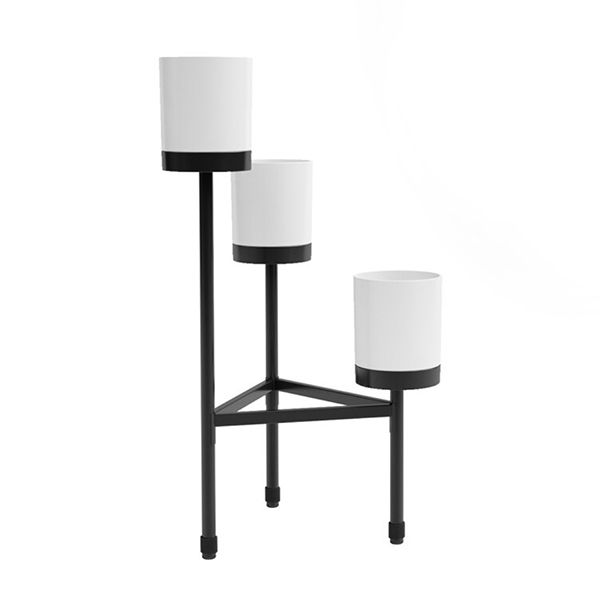 3 Tier Black Metal Plant Stand with White Containers. Each container is 7" high and 6" around.