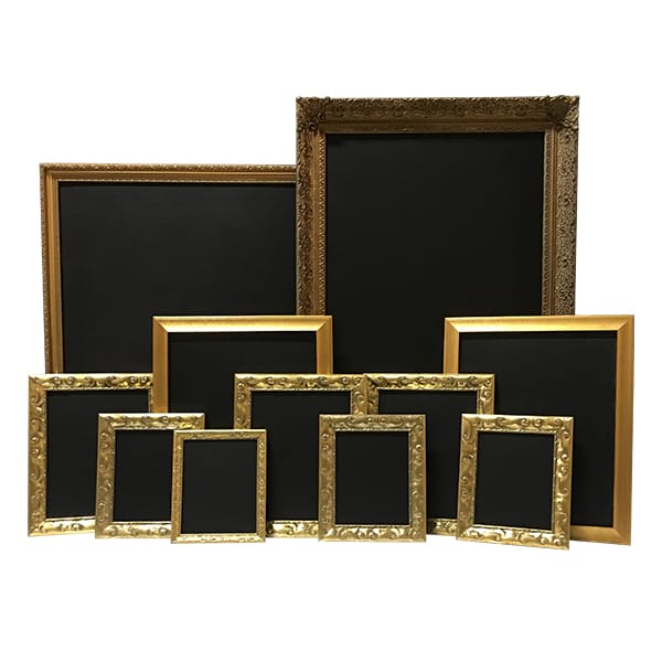Gold frame chalkboard display that coordinates with the Alba and Audrey chalkboards.