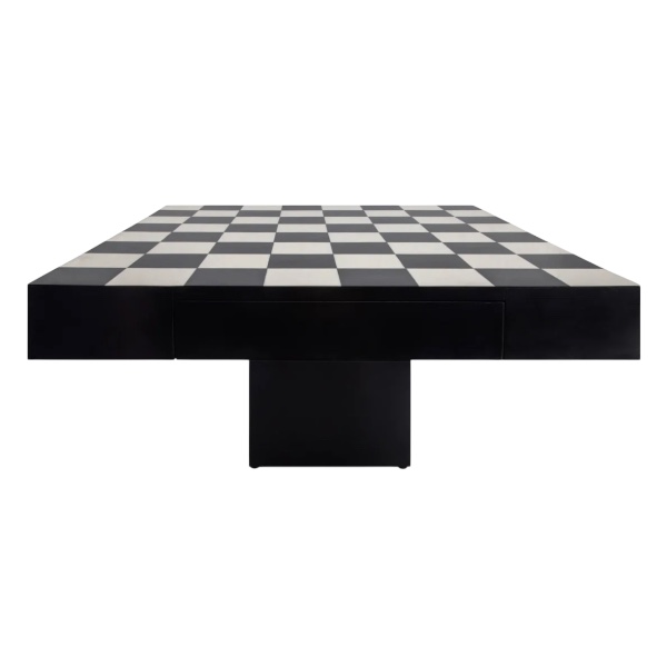 Fun interactive chess coffee table. Chess pieces included and stored in side drawers. See additional pictures.