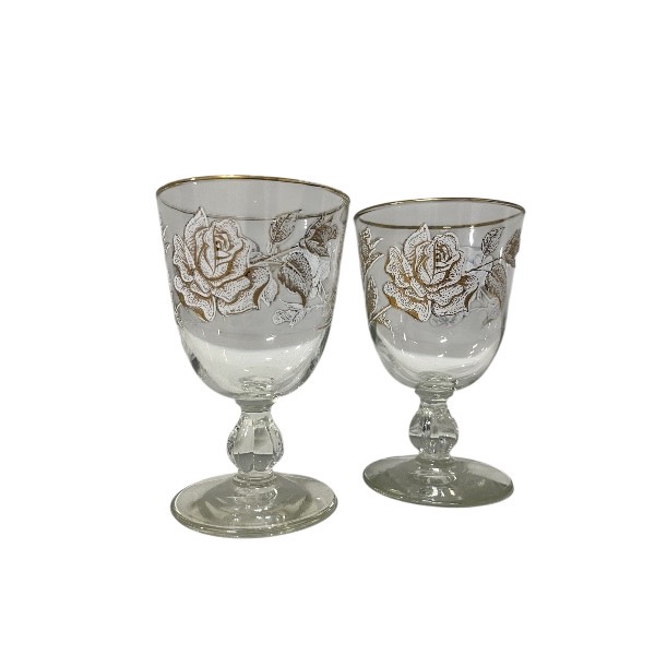 clear and gold red wine glasses