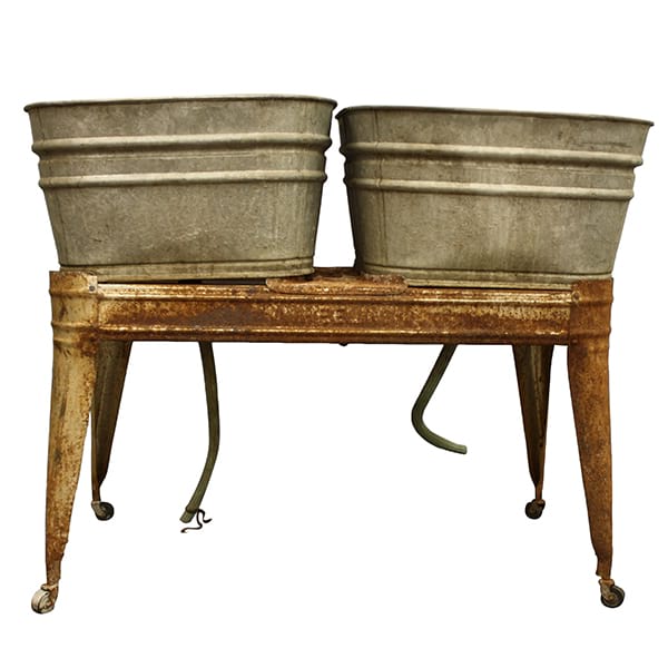 Vintage Galvanized 2 Tub Wash Stand on Wheels. Working Drain.