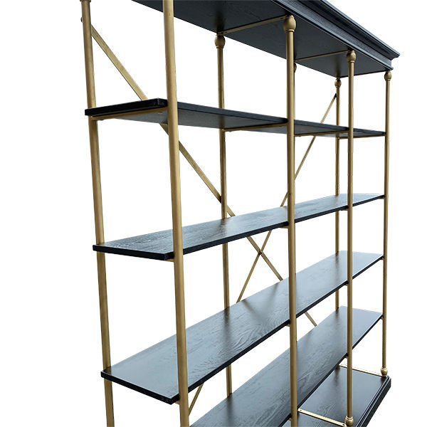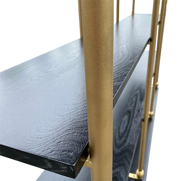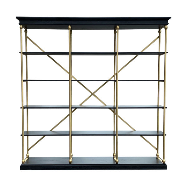 Oversized black and gold bookcase/bar back. Perfect for display or bar back. Each opening (15 total) measures: Width-27.5, Depth-11", Height-14.5"