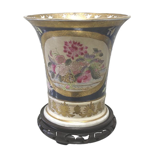 Handpainted Vase on Wooden Stand