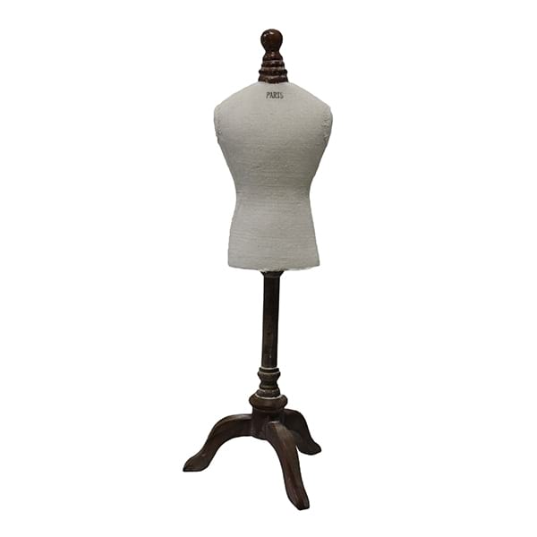 Mini French style dress form on stand.