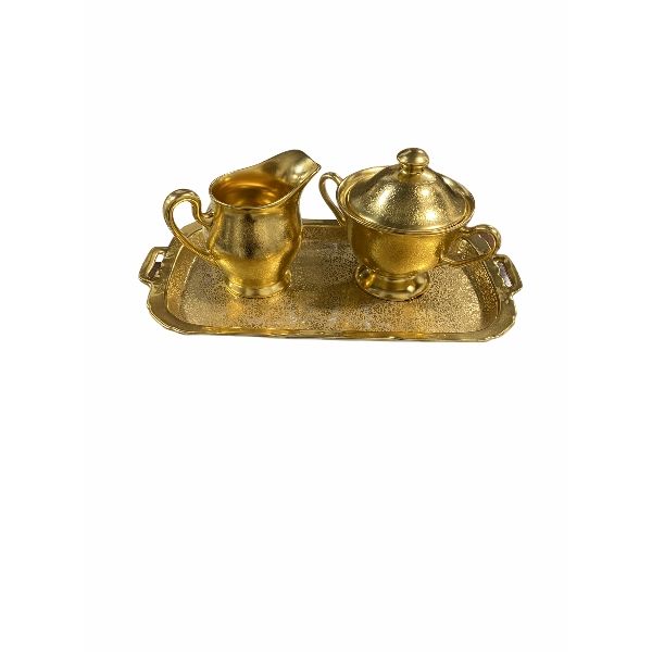Authentic Pickard Gold Ornate Cream and Sugar Set with Tray.